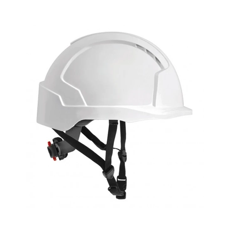 Weighing less than 300g (dependent on model), the EVOLite® is the lightest safety helmet for sale in the UK. A 6-point terylene cradle harness system offers unrivalled comfort without compromising performance. Sweatband made from Egyptian cotton core with porous PU coating for maximum sweat absorption. PH neutral, dermatologically tested. Meets the EN 50365 Class 0 10KV standard. This standard is applicable to electrically insulated helmets used for working live or close to live parts on installations not exceeding 1000Vac or 1500Vdc. Extra large area for logos on the front, sides, and rear. EVOLite® is a breakthrough product enabling Health and Safety Officers to achieve new levels of compliance due to its unrivalled comfort. It is lightweight, extremely comfortable and fits the widest range of head shapes and sizes. The harness and shell are truly integrated as one to give the best performance by keeping it firmly rooted on the head, even when fully inverted. Gives added security and protection when working at height, in high winds, or when there is a high degree of activity, such as during motorway maintenance.
