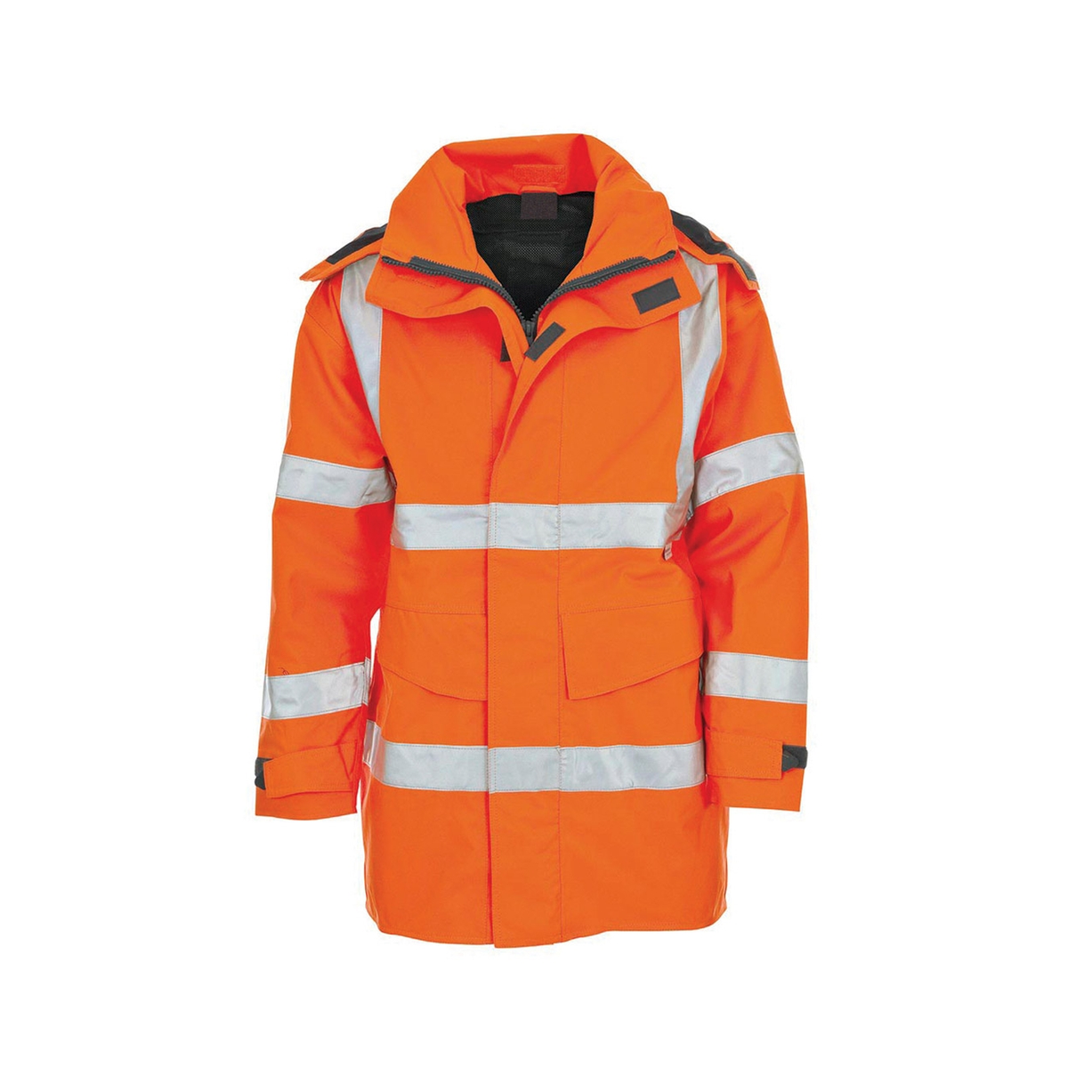 Railway Group Standard RIS-3279-TOMWaterproof, windproof & breathable fabricPFAS free DWR finishMesh-lined body and sleevesHeat applied stretch reflective tape for improved garment mobilityZip-secured chest pocketInteractive YKK® ZipInteracts with Leo bodywarmer, softshell and fleece jackets3 piece concealed hoodVelcro-fastened cuff adjustersLycra storm cuff with stay-put thumbholesShaped high collarFull length Velcro fastened double storm flapShaped drop tail backFleece-lined chin protectorLarge internal tablet pocketInternal zipped patch pocketInternal drop pocketLarge zip-fastened front pocketsDouble radio/camera loop EcoViz® 10K recycled polyester with PU dot-lamination, 190gsm. 80% recycled. EN343 4:4 certified to 10 wash cycles