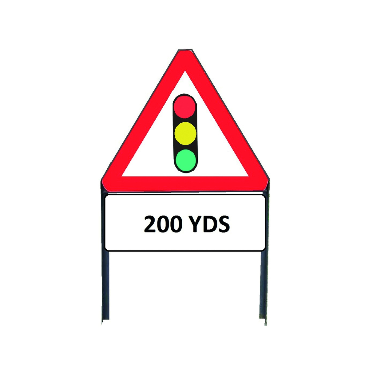 - Traffic Lights In Use Ahead Metal sign with "200yd" Supplementary plate in frame with clips - 750mm